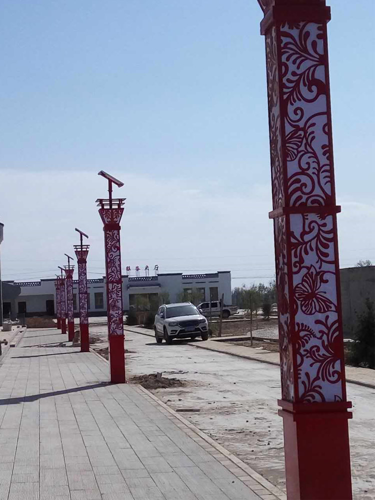蘭光照明甘肅武威太陽能景觀燈工程 ,主要采購我公司自主生產的造型景觀燈,燈體主體為中國紅,配有植