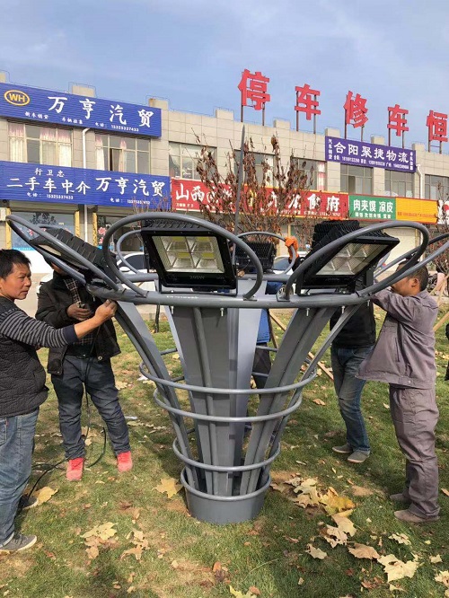 簡介—— 合陽市太陽能路燈施工完成效果圖陜西蘭光照明工作人員正在施工太陽能路燈在有條不紊的組裝過程中